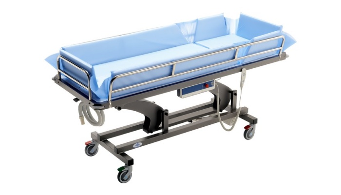 Shower and transfer trolley for adults suitable for use both in care facilities and at home. It is possible to adapt the shower trolley according to the preferences of carers or family members and to the user's anthropometric characteristics. It has a standard additional function to adjust it to Trendelenburg position, as well as obviously to tilt the patient platform to drain water away.
